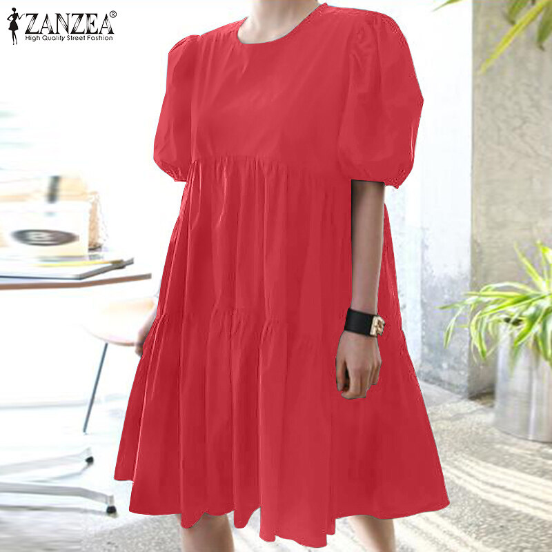 ZANZEA Women Summer Sundress Holiday Travel Fashion Club Beach Tiered Mini Dress
