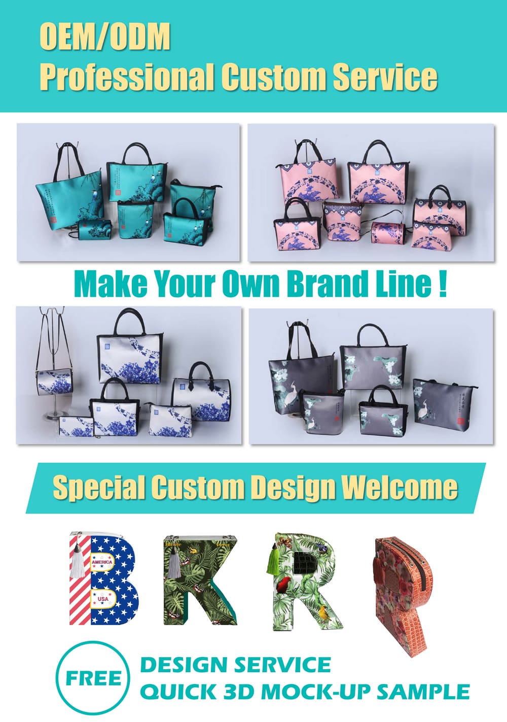 Customized Pattern Printing, Logo, Size, Style and Interior Design, Materials, Accessories, Packaging Accepted