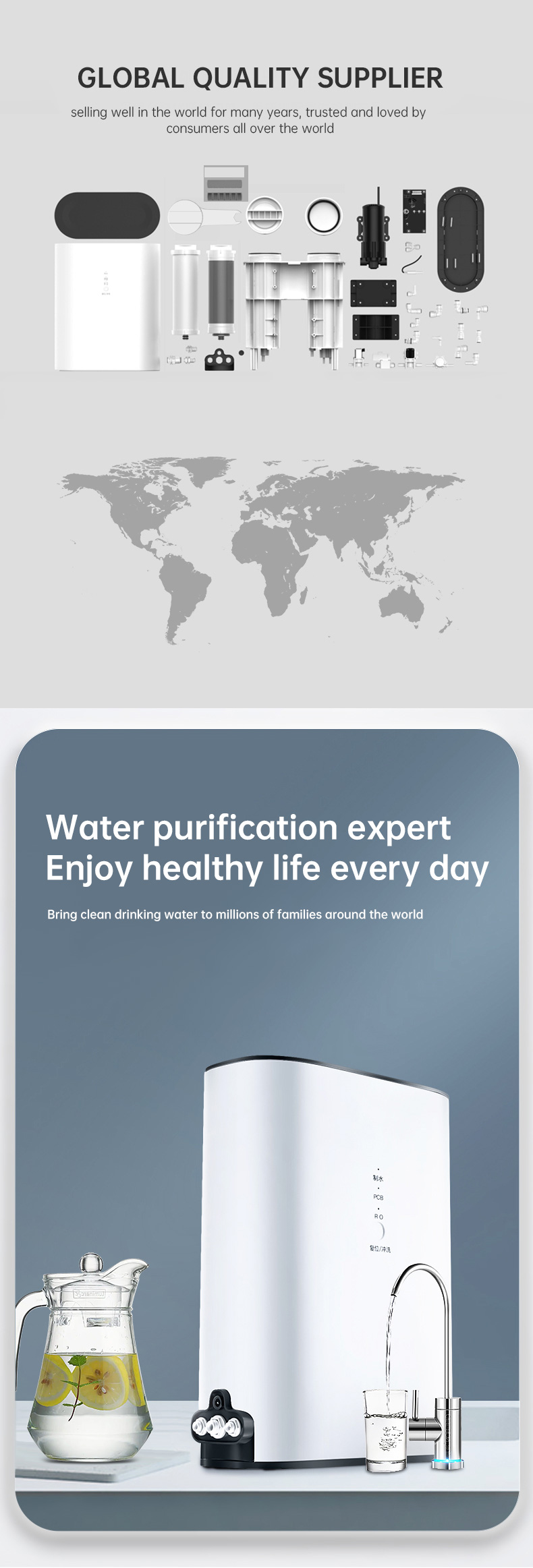 .Professional OEM,ODM manufacturer .R&D Independent design .Private mold .Independent production .Independant patents .Focus on water purifying 10 years .Welcome customization