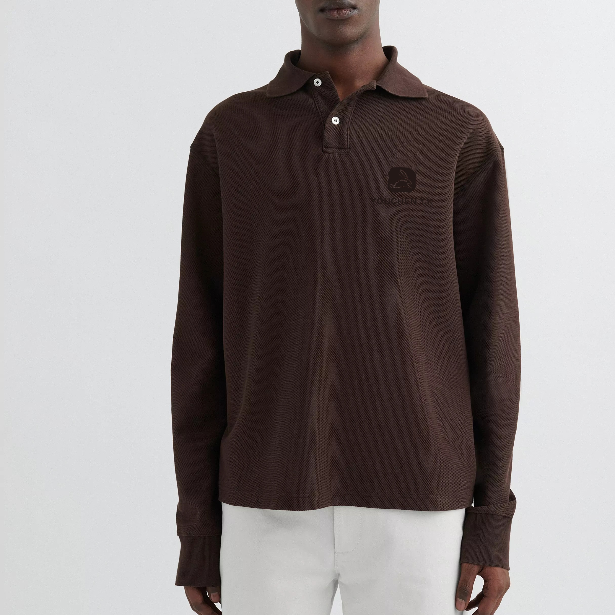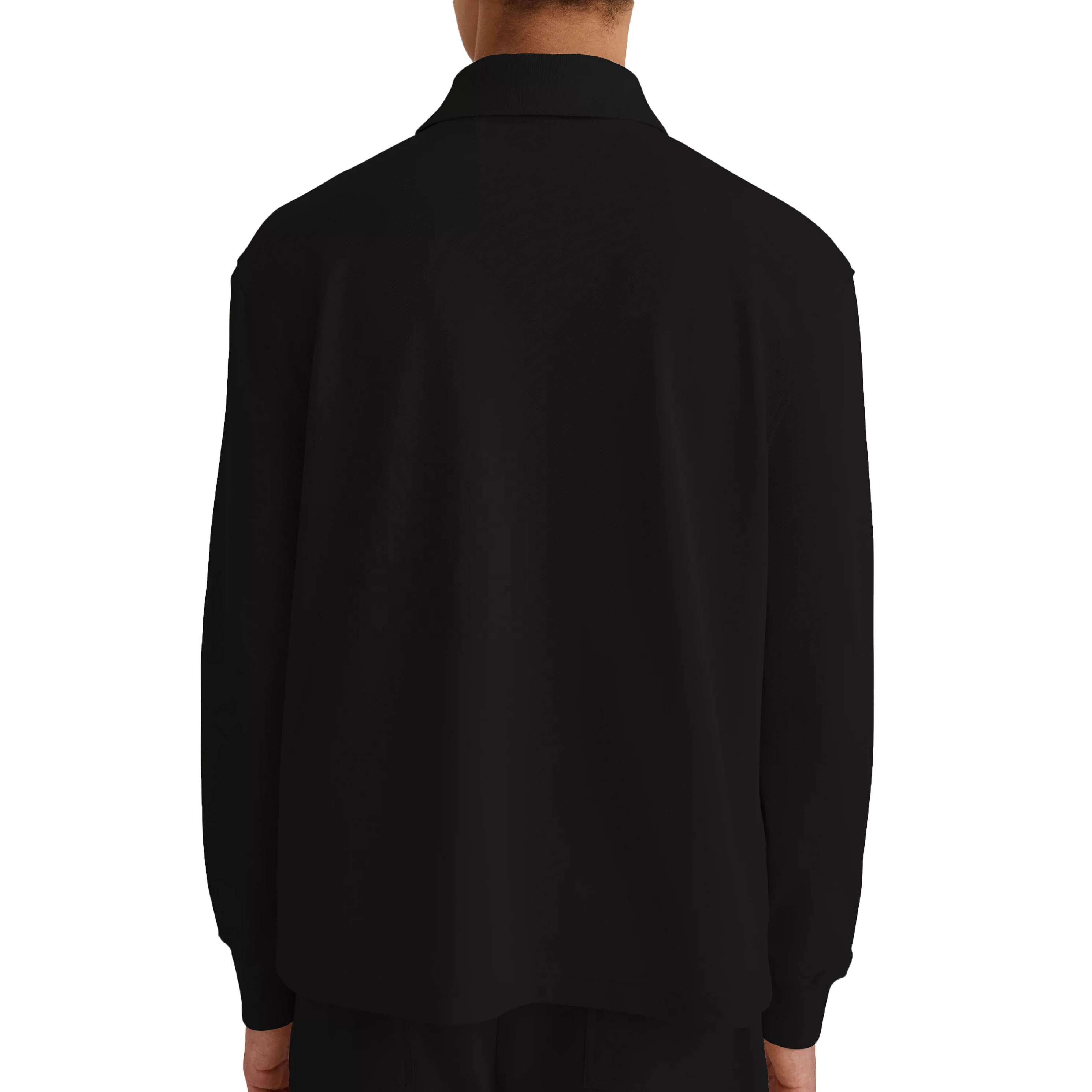 Men Streetwear 100% Cotton Long Sleeves Embroidered Polo Shirt For Men Point Collar With Button Placket