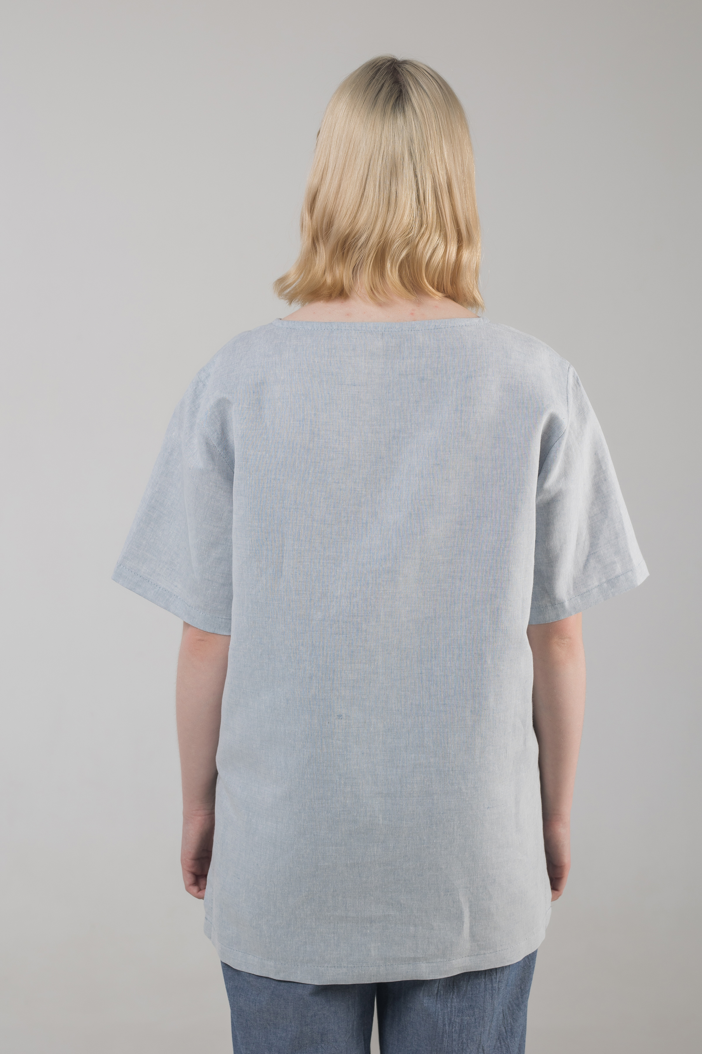Crew neck linen T-shirt with side slits. Relaxed fit. Hand washing recommended. Wash in a washing machine at 40-60° on the wool or hand wash settings. Air-drying, avoid frost drying.