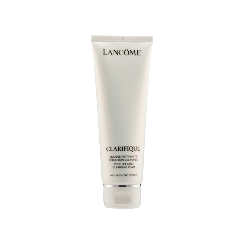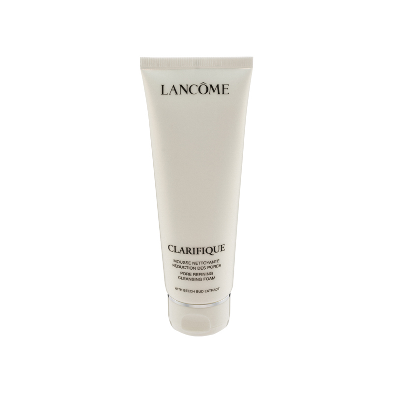 Lancome Clarifique Pore Refining Cleansing Foam Silky and velvety, this face wash cleanses face gently to remove dirt and old dull skin cells, while polishing and nourishing skin for a translucent, dewy and smooth complexion.Product Features:•Thorough cleansing: it helps to remove dirt, impurities, old dull skin cells and excess oil from pores to leave skin cleansed and smooth.•Skin polishing: formulated with French Beech Bud Extract and Salicylic Acid, this face wash helps to tighten pores and polish skin surface for a smooth complexion.•Gentle formula: the creamy texture forms dense lather to gently carry away impurities and nourish skin with amino acid. It is mild and suitable for sensitive skin.Ingredients:•French Beech Bud Extract, Salicylic Acid: purifying and polishing skin surface •Amino Acid: nourishing
