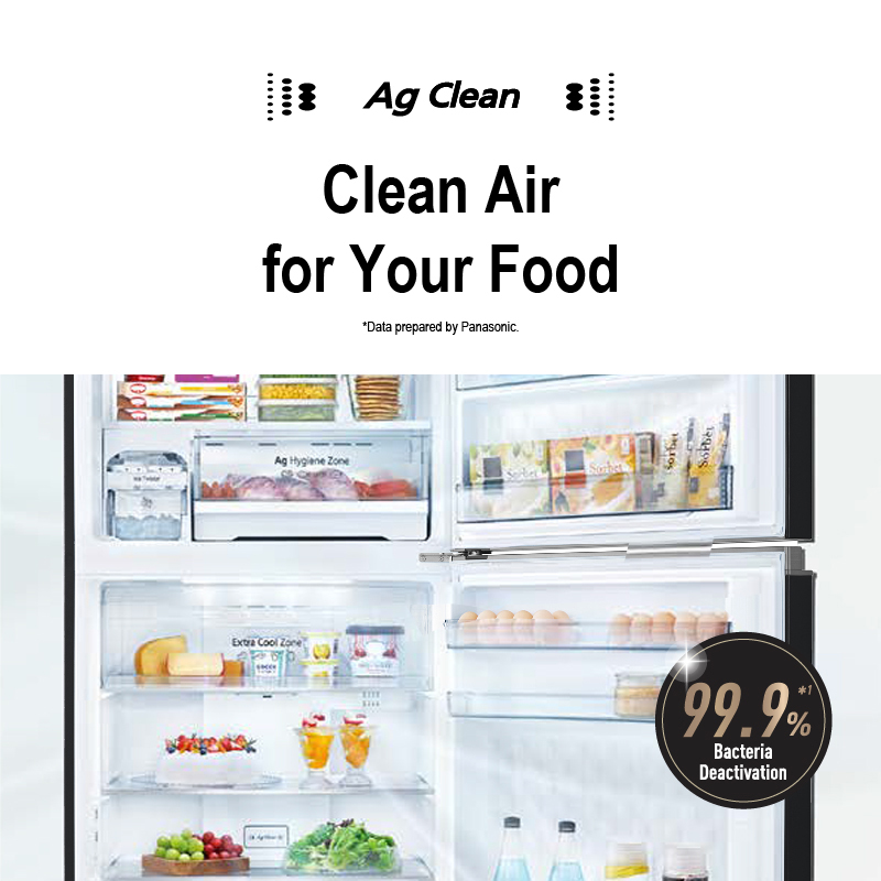 The Ag filter deactivates 99.9%*² of bacteria and reduces unpleasant odours. The air inside the refrigerator passes through dual Ag filters to keep space clean.