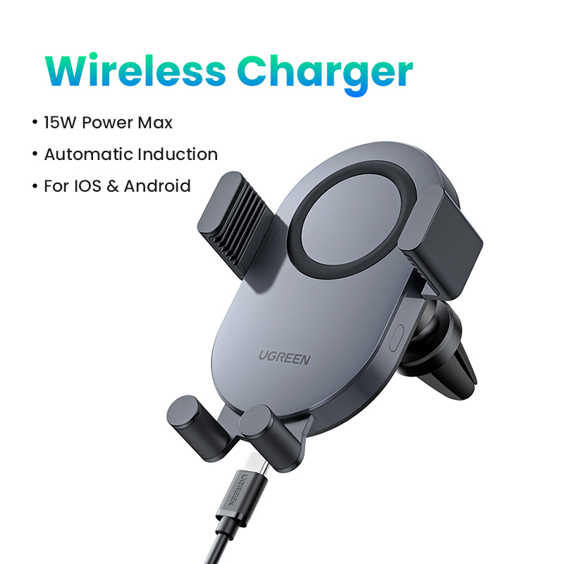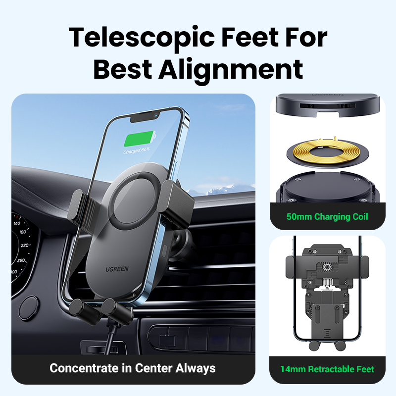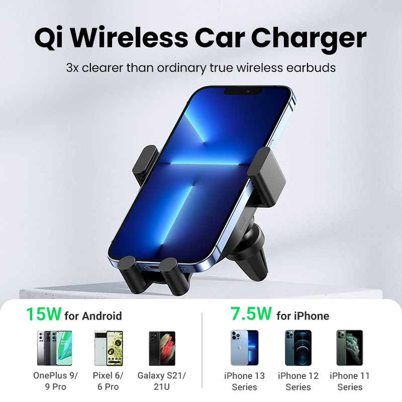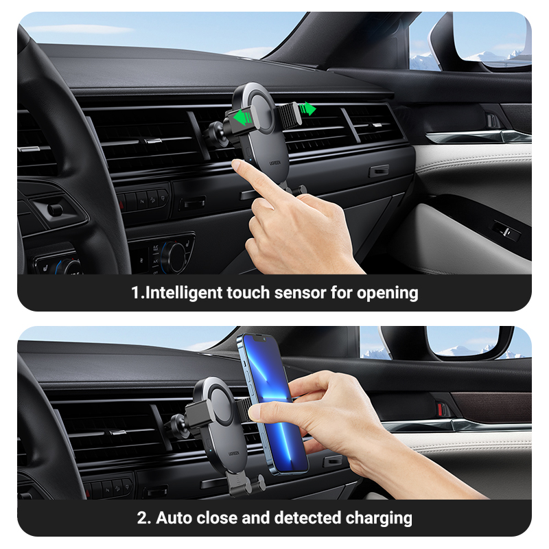 UGREEN 2-IN-1 15W Wireless Car Charger, Auto Clock Car Holder for iPhone 14 13 Pro Max iPhone 14 Plus iPhone 12 11 Pro Max Samsung Galaxy S22 Ultra Android CellPhones