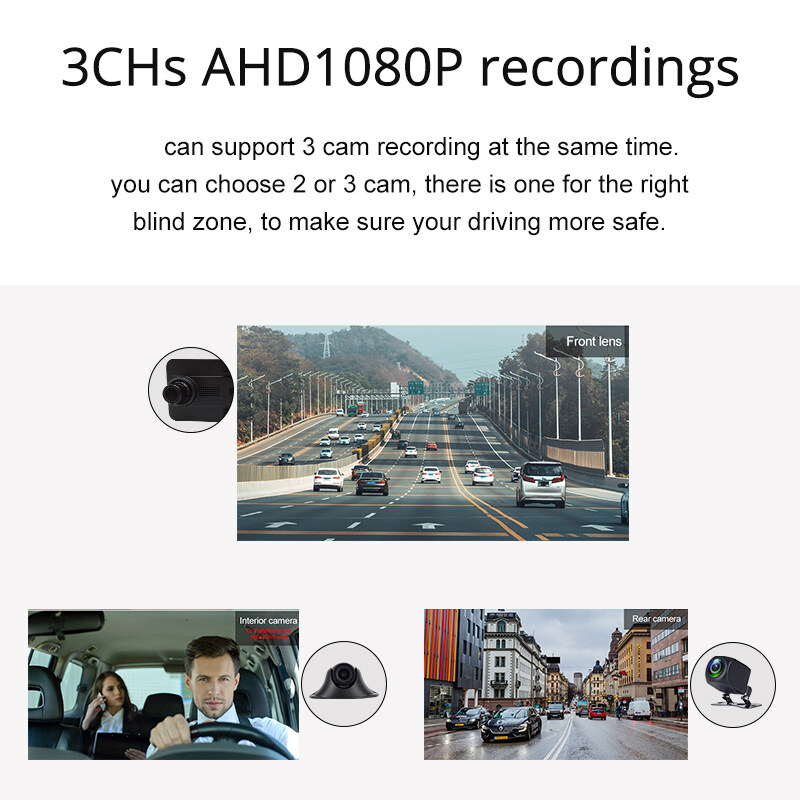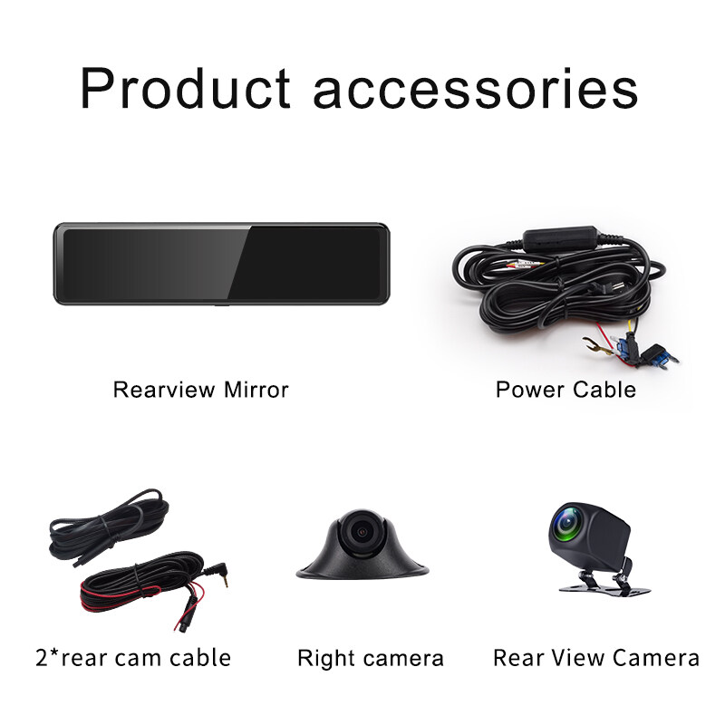 EKLEVA 12 Inch IPS Touch Screen 1080p WIFI and App 3 Camera View Car Rearview Mirror Camera ADAS DVR Dash Cam Car Auto Video Recorder