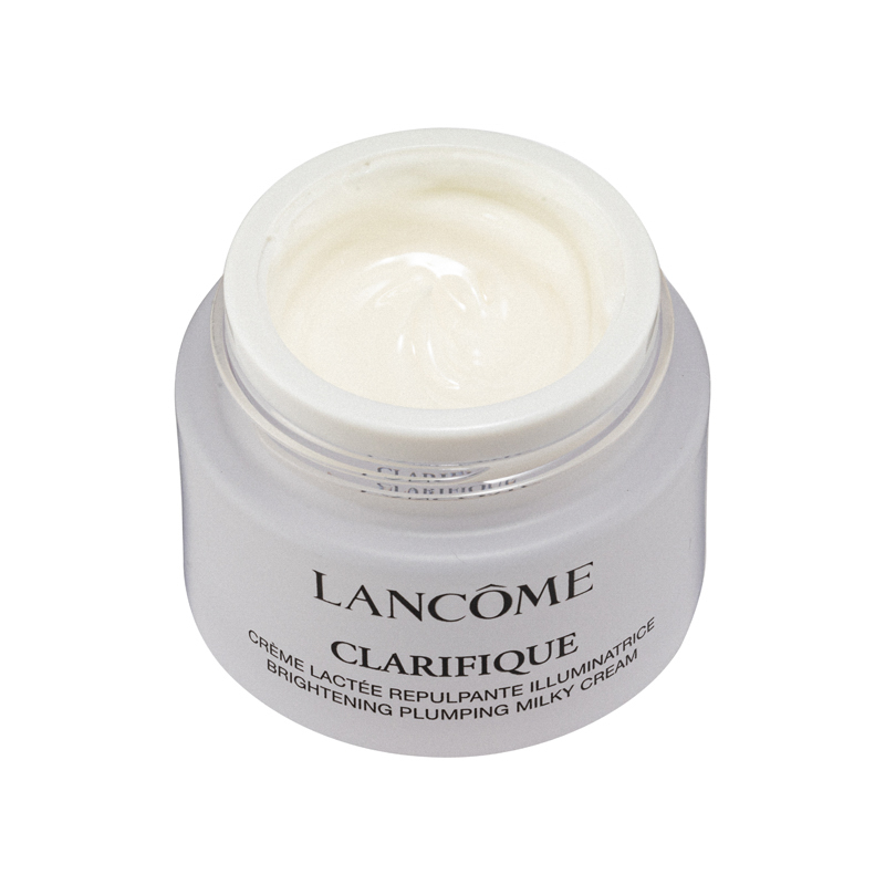 Lancôme Clarifique Brightening Plumping Milky Cream (15ml) With 5 brightening ingredients, including caffeine, Nicotinamide, LHA, 377 and scutellaria extract, free your skin from dullness and darkness. Product Features:•Exfoliating: LHA promotes skin renewal and removes dead skin cells while polishing the surface of the skin.•Brightening: Niacinamide, caffeine, 377 and Scutellaria extract are effective in suppressing the transfer and growth of melanin under skin. •Revitalizing: Formulated with the French beech bud extract, it helps to revitalize skin and promote cell metabolism, revealing a smooth and dewy complexion. Added with vitamin Cg and B3, skin tone becomes even with luster. Ingredients:•French Beech Bud Extract: Revitalizing skin and promoting cell metabolism •Vitamin Cg and B3: Even complexion with luster•LHA: promoting skin renewal and removes dead skin cells •Niacinamide, Caffeine, 377 And Scutellaria Extract: suppressing the transfer and growth of melanin under skin