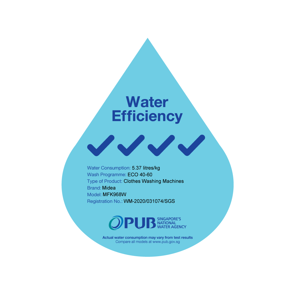 [Bulky] Midea MFK968W White Front Load Washing Machine, 9kg, Water Efficiency 4 Ticks