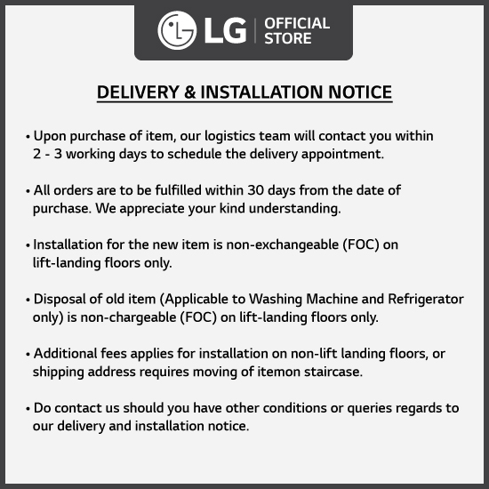 • *Kindly note that LG reserves the right to reject any redemption of purchased product if the redemption has exceed the dateline for redeem.