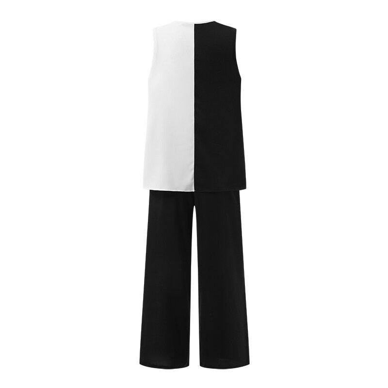 ZANZEA 2PCS Women Outfits Summer Sleeveless Patchwork Irregular Hem Shirt Trousers Suits Set