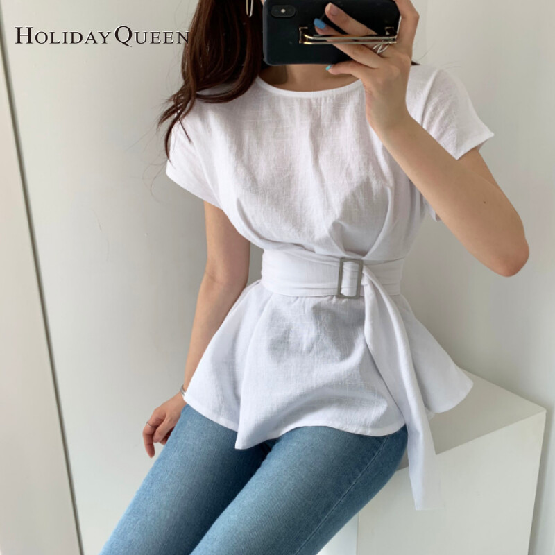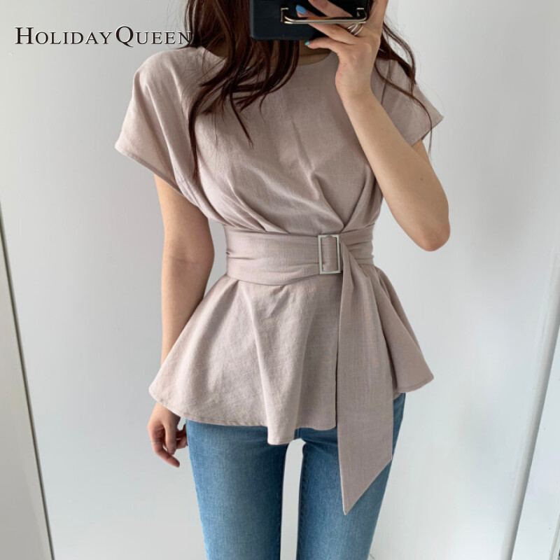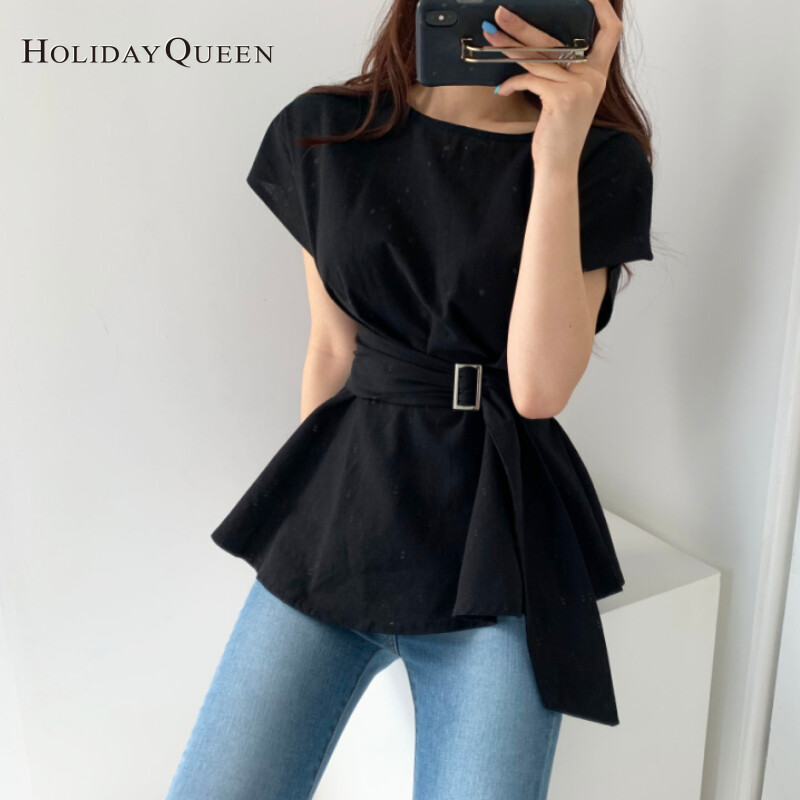 HolidayQueen 2022 New Niche Lotus Leaf Hem Thin Belt Thin Shirt One Size Free Shipping HQ1312