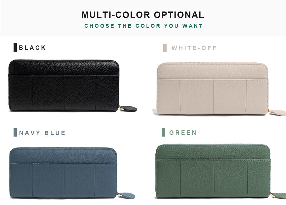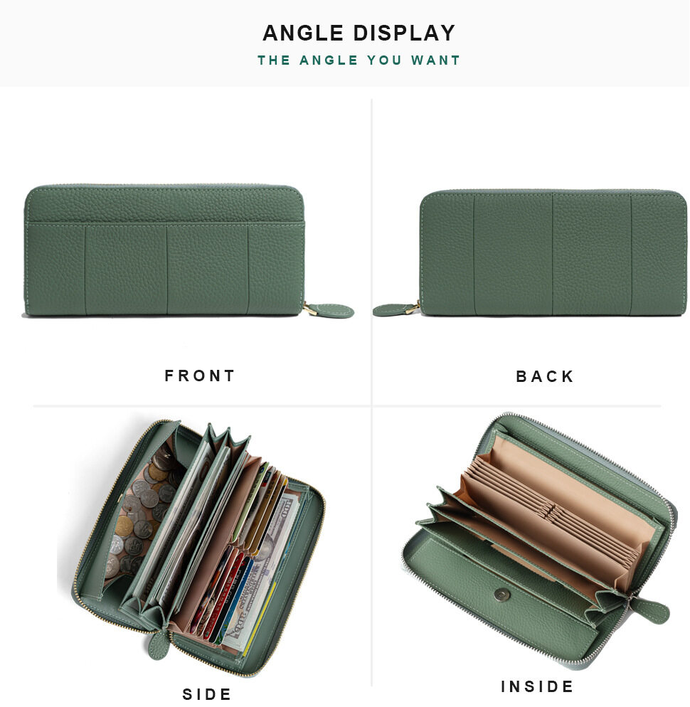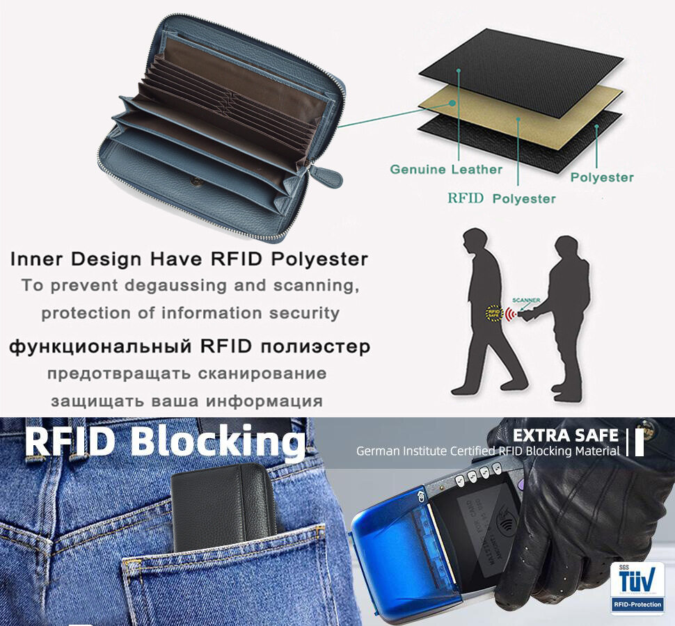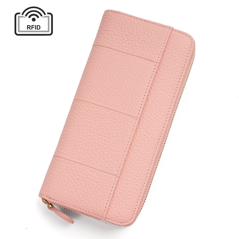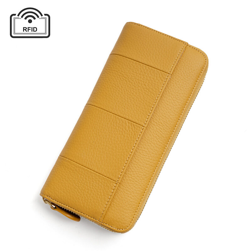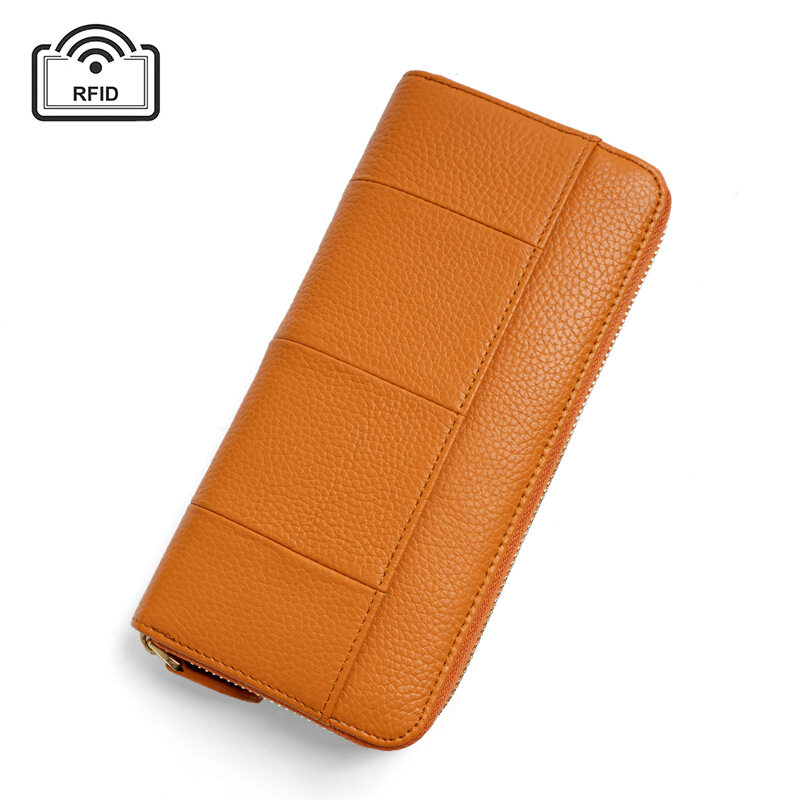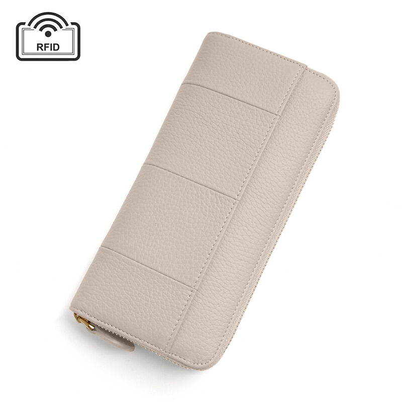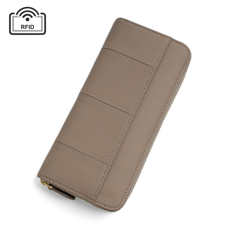 Royal Bagger New RFID Zipper Long Wallets for Women Genuine Cow Leather Large Capasity Ladies Clutch Bag Multifunction Casual Girl Card Holders Coin Purse Phone Bag