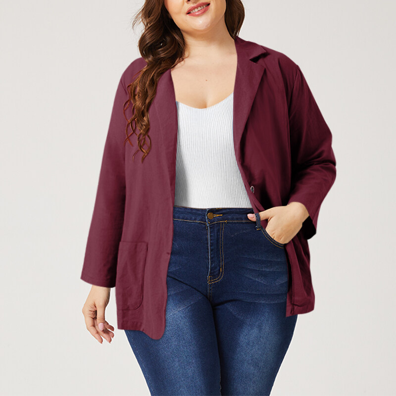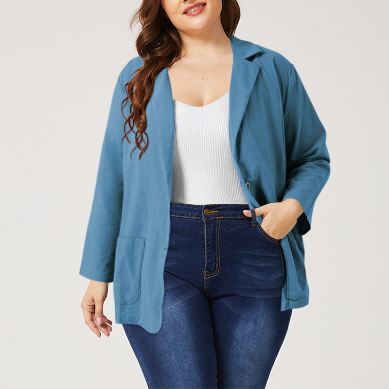 ZANZEA Women Long Sleeve Collared Button Down Solid Cotton Blazer Coat Plus Size #5