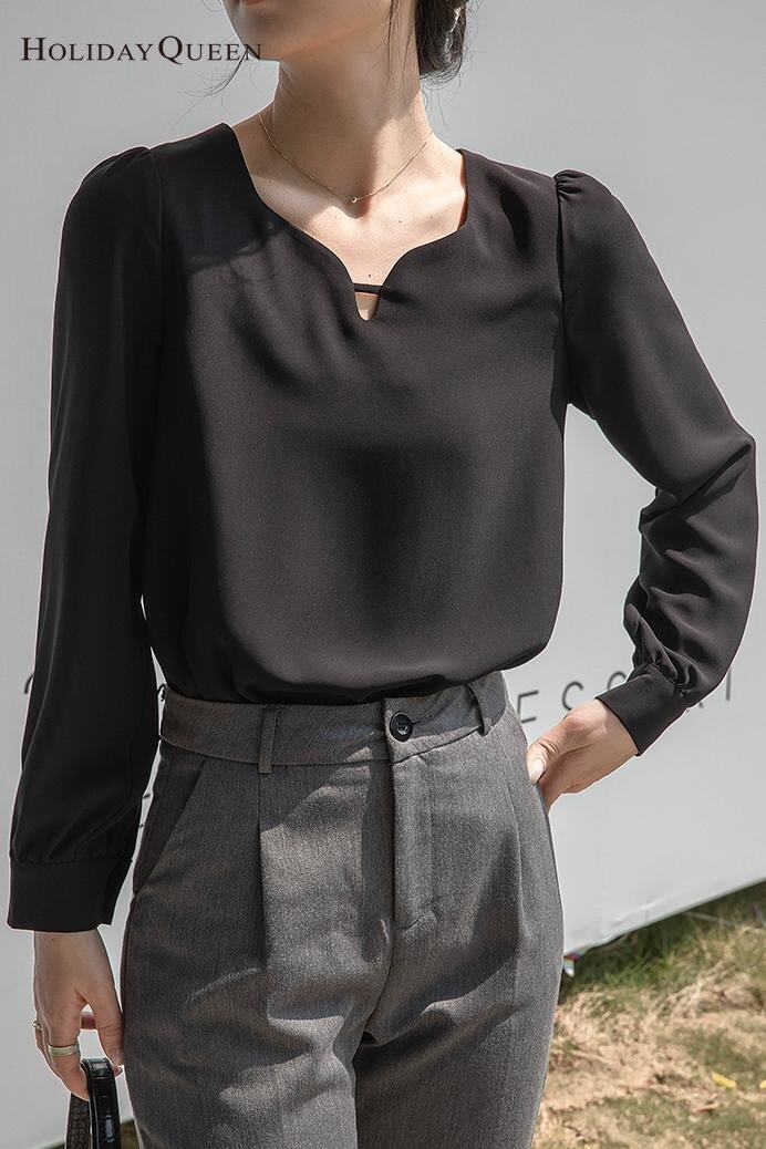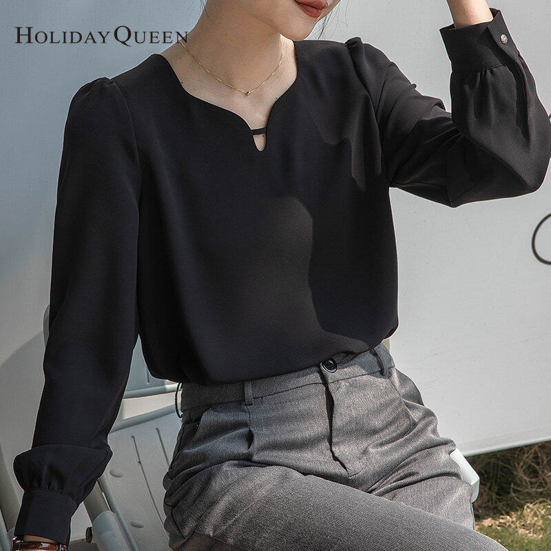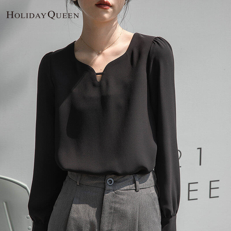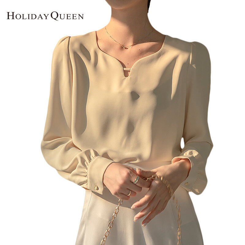 HolidayQueen New Temperament Drop Collar Shirt Women 2022 Early Autumn Retro New Design Niche Shirt Women's Top Free Shipping HQ1799