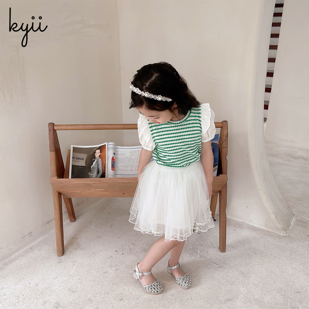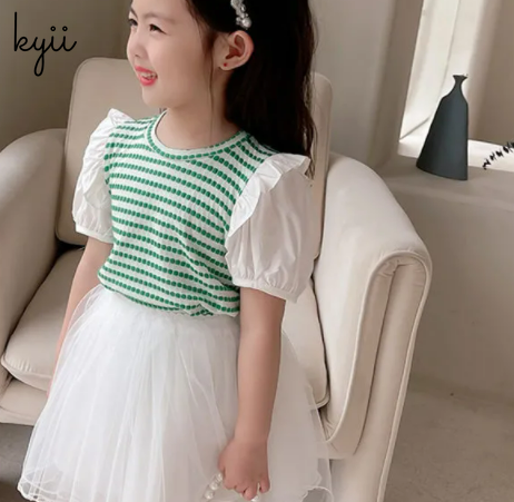 KYII Girl Summer children Korean Round-neck shirt Versatile short sleeve Top kyii0036