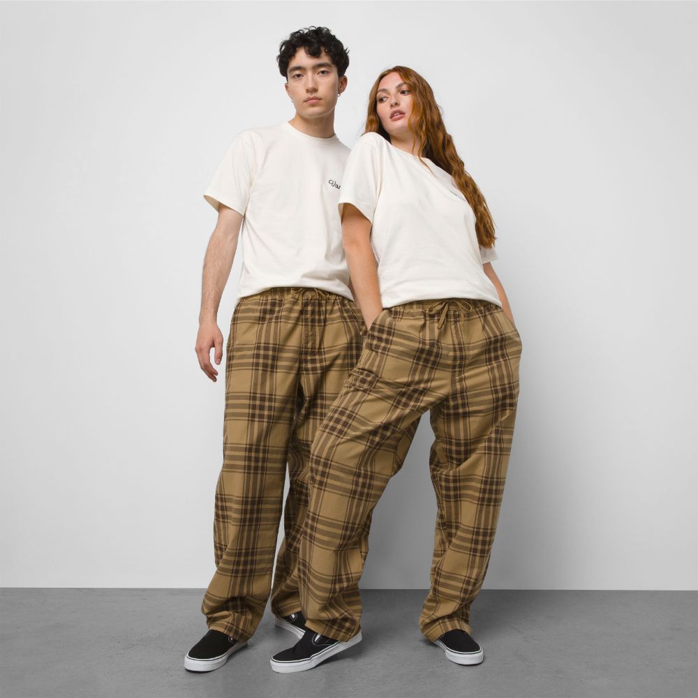Vans Range Plaid Baggy Tapered Elastic Waist Pant Men BROWN VN0005XYZ1G1