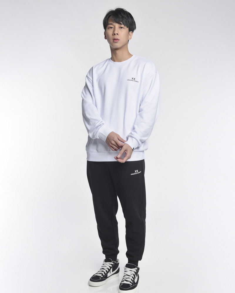Yishion Men Oversized Solid Coloured Long Sleeve Sweatshirt with "ORIGINALTEEBOX" Logo (White)