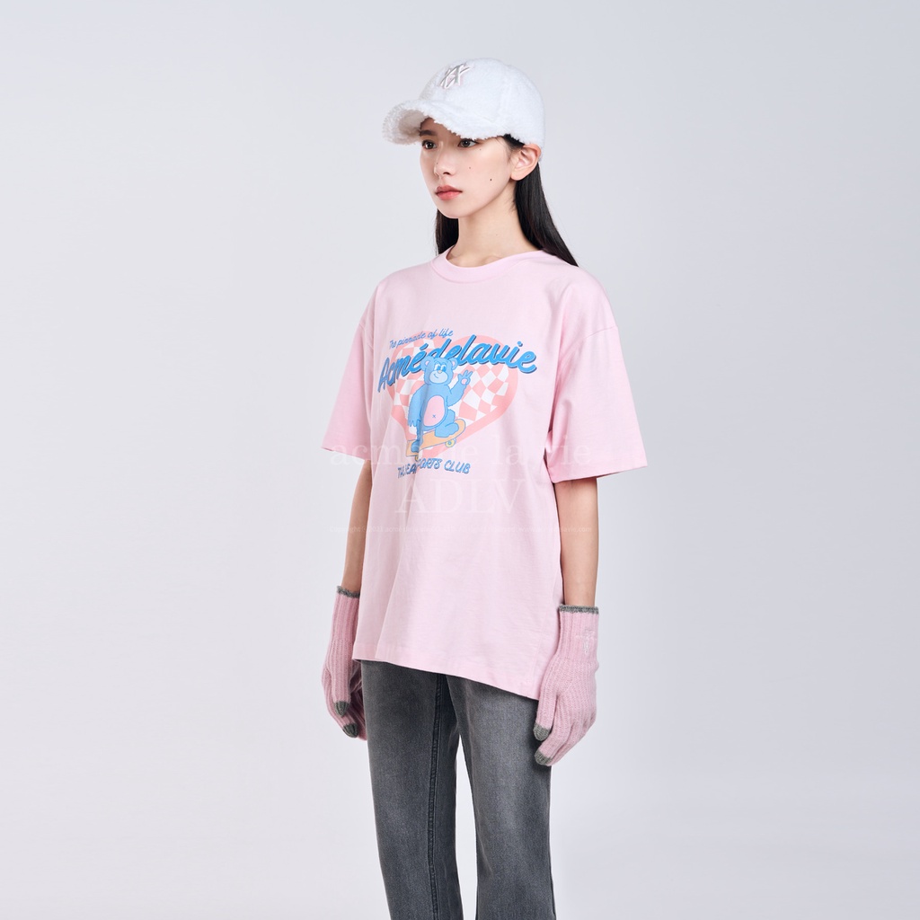 [acme de la vie] CHECKERBOARD HEART BEAR SHORT SLEEVE T-SHIRT 100% Authentic ADLV