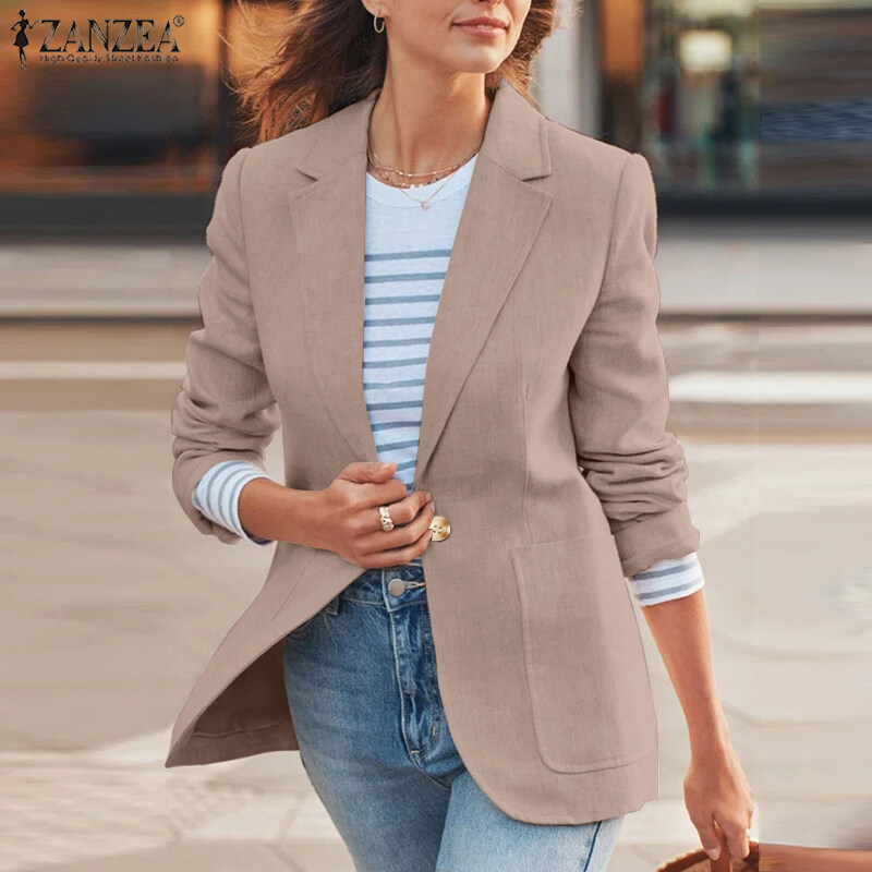 ZANZEA Women Versatile Lapel Long Sleeved Blazer Fashion Fitting Suit Coat Button-Up Outwear #15