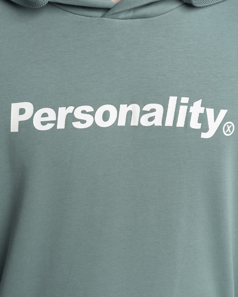 Yishion Men Solid Coloured Pullover Hoodie with Kangaroo Pockets and Personality Slogan (Teal Green)