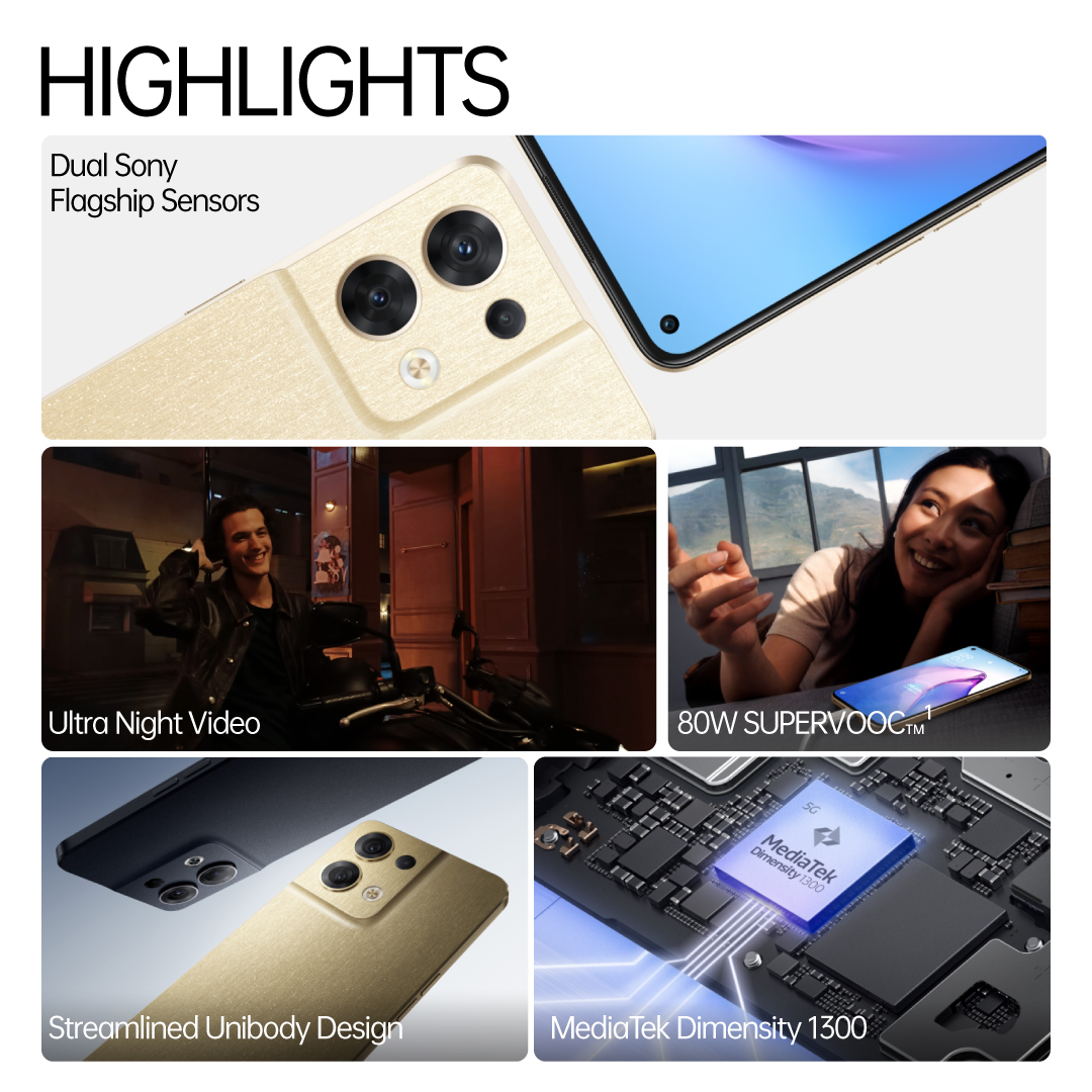 OPPO Reno8 5G (12 + 256) / Dual Sony Flagship Sensors / Night Portrait / Mediatek Dimensity 1300 / 80W SUPERVOOC