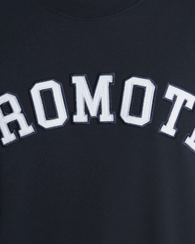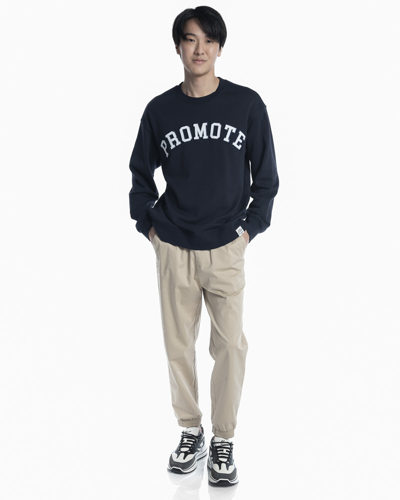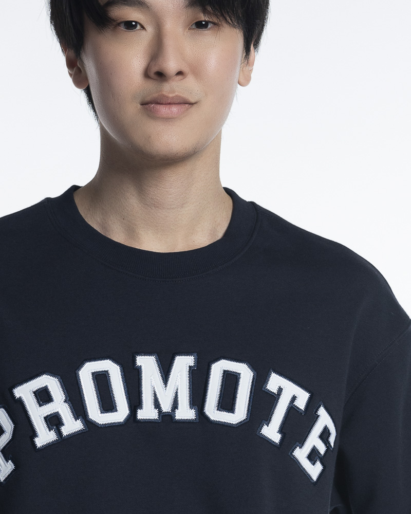 Yishion Men Solid Colour Long Sleeve Sweatshirt with Promote Slogan Embroidery (Dark Blue)