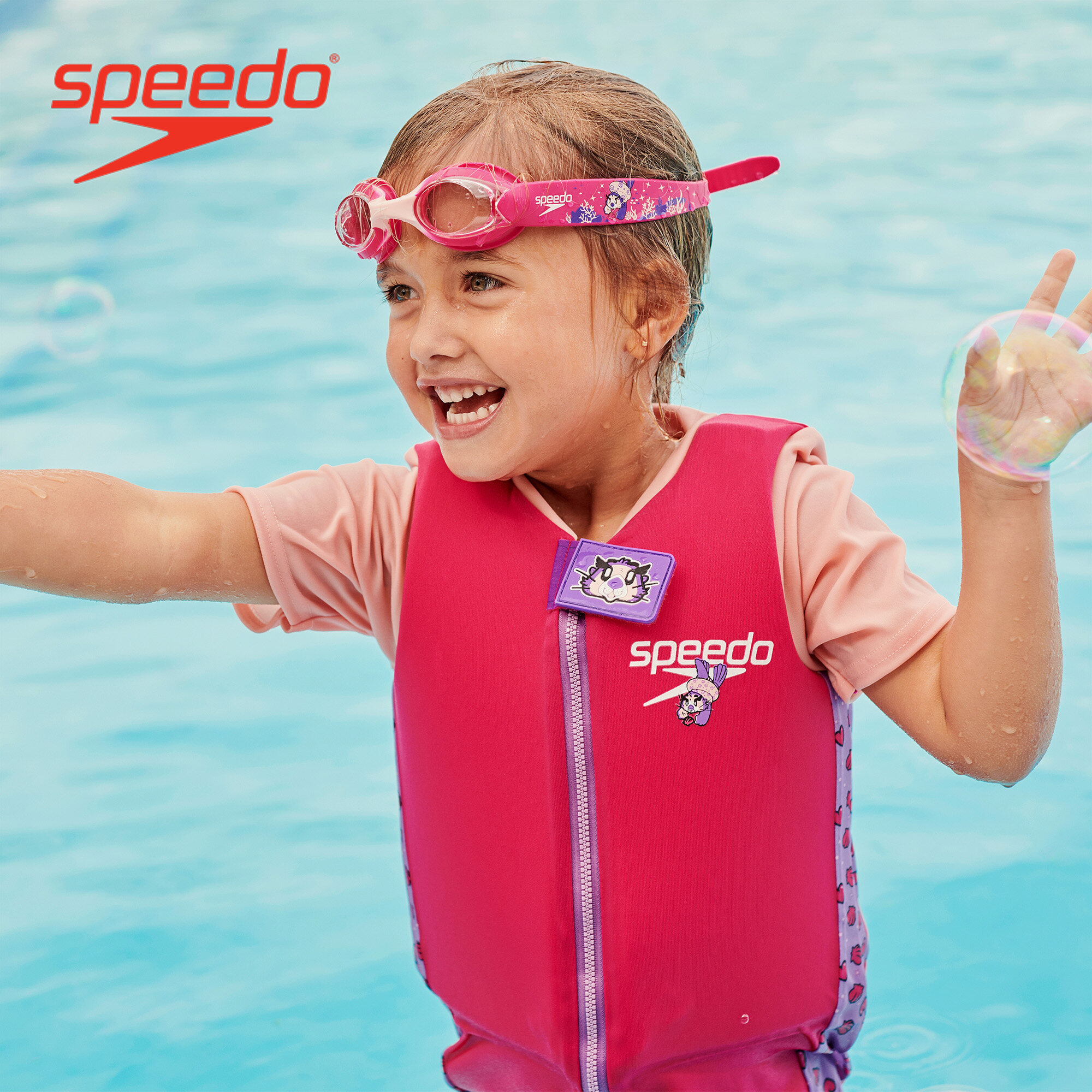 • Anti fog coated lens – so your child can always see you in the pool