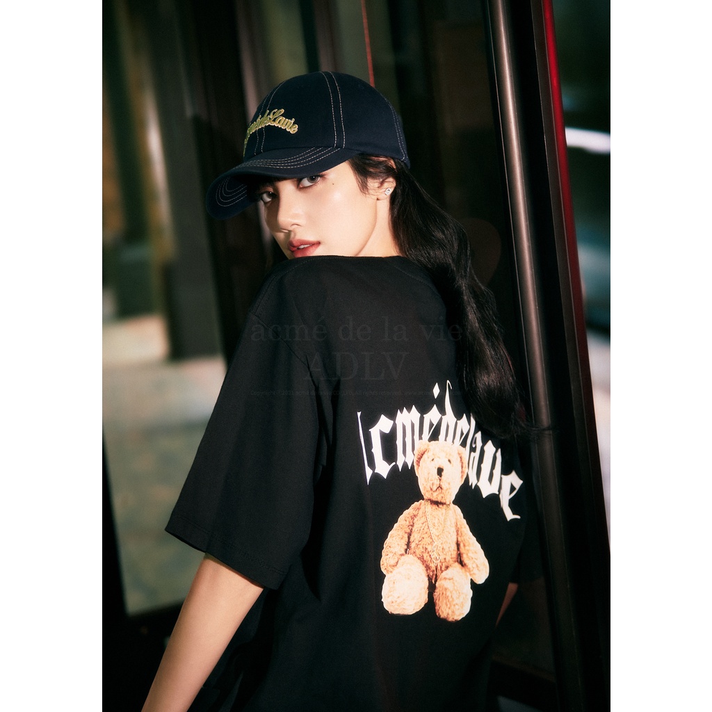 [acme de la vie] 2023 NEW BLACK PINK LISA GOLD CHAIN BEAR DOLL SHORT SLEEVE T-SHIRT ADLV OVERSIZED