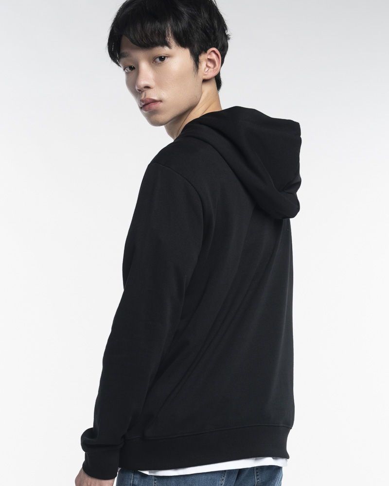 Regular Solid Coloured Long Sleeve Pullover Hoodie with Kangaroo Pockets at the front. Comes with Personality Slogan at the front. Made of cotton.