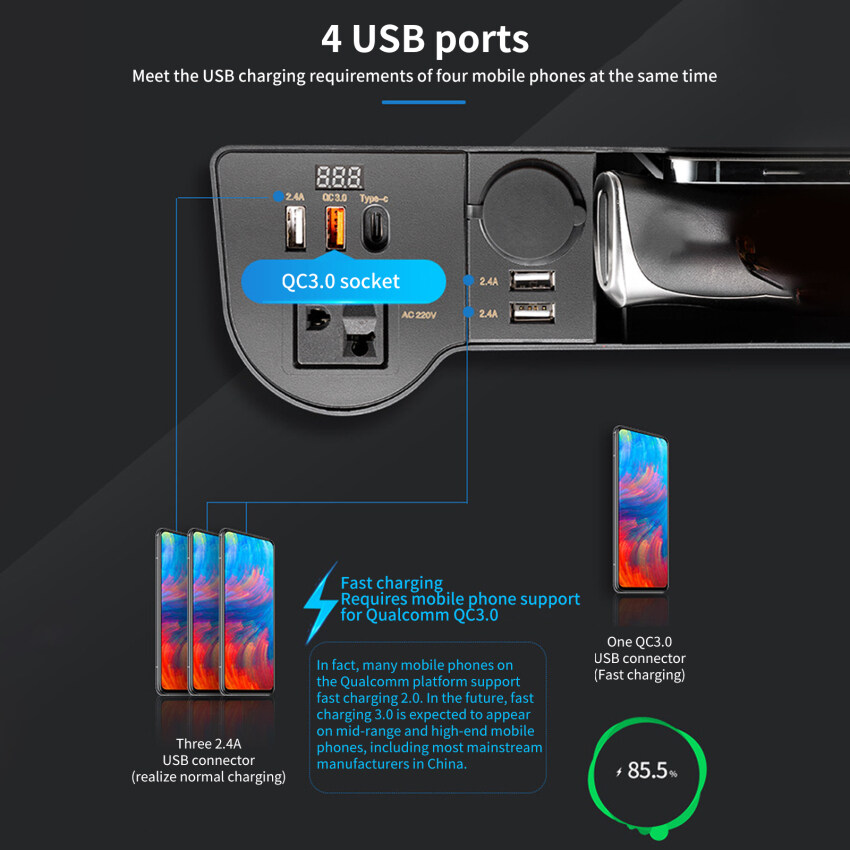 USB Ports: 2.4A*3 / QC3.0*1