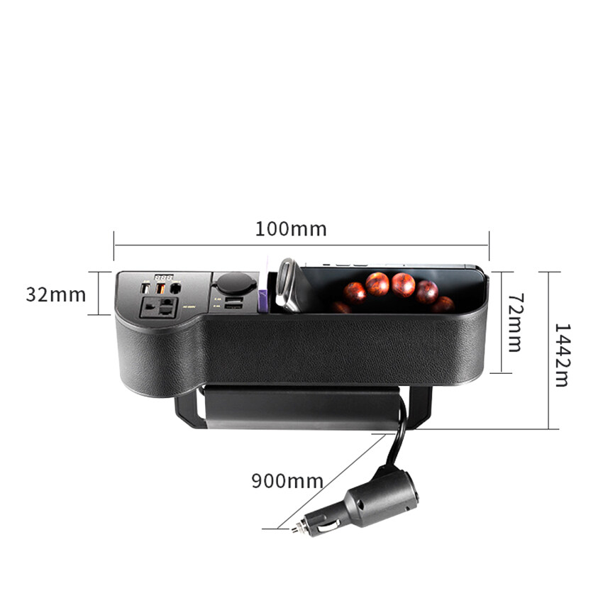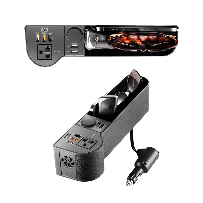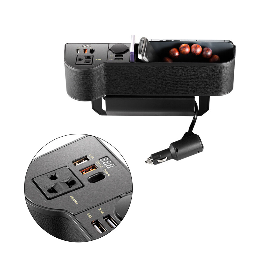 12V/24V to 220V Car Seat Gap Organizer Multifunctional Seat Crevice Storage Box LED Voltage Display Universal Car Accessories