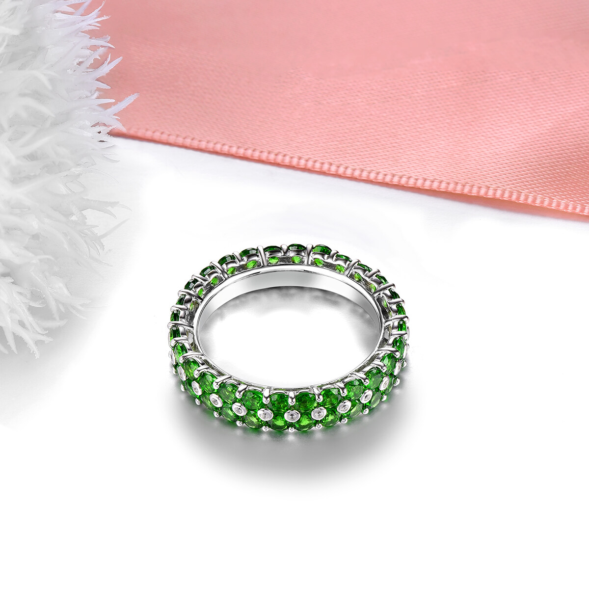 4.5Carats Original Solid Sterling silver 925 Ring Natural Chrome Diopside Eternity Ring Green Gemstone Silver 925 Eternity Ring For Lady Jewelry Wedding Gifts