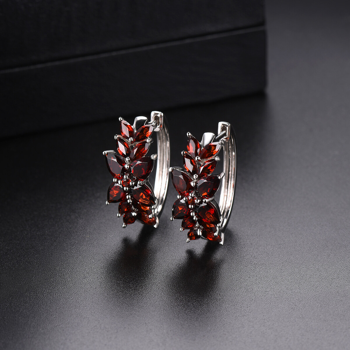 Jewelry Sets Genuine Red Garnet Cluster Earrings Ring Silver 925 Original Design Red Gemstone Fine Elegant Crystal Jewelry for Women Engagement Anniversary Gift