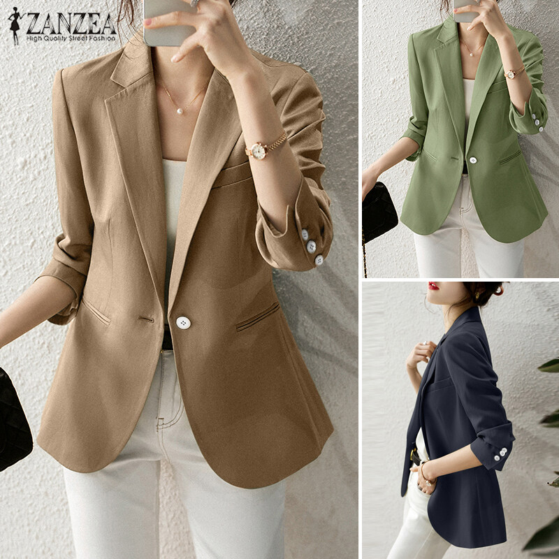 ZANZEA Korean Style Women Formal Office Solid Overcoat Commute Button Up Blazer #3