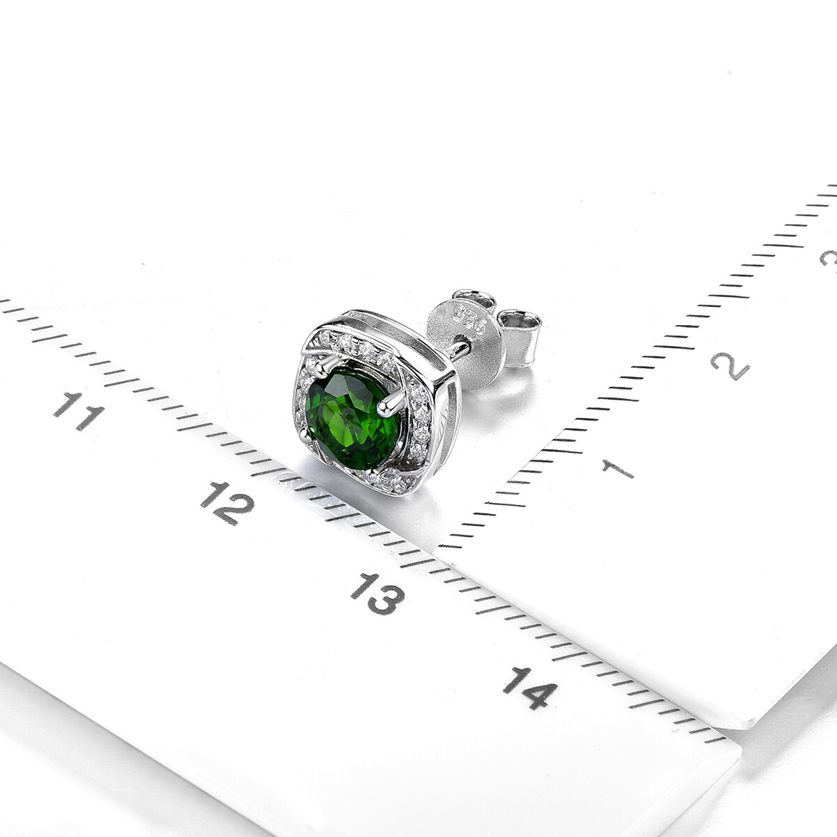 Lohaspie Jewelry Real Silver Stud Earring With Stone Natural Chrome Diopside Earrings Green Gemstone Earring For Lady Christmas Gift Jewelry