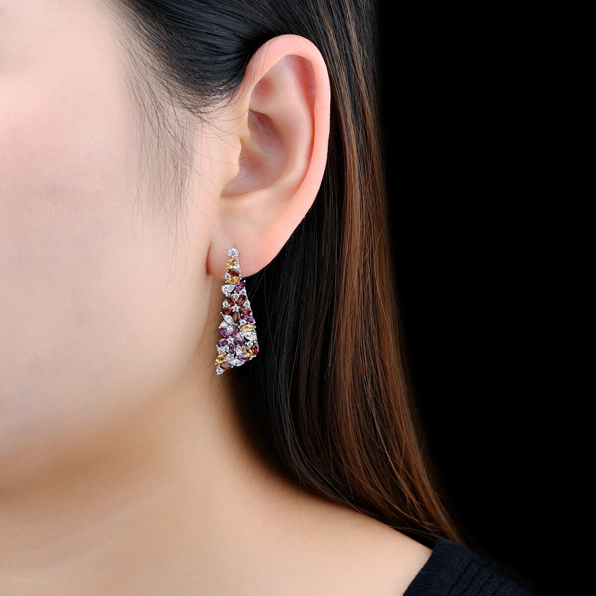Lohaspie Jewelry Real 6.2 Carats Earring Silver 925 Original Sale Natural Rhodolite Garnet Citrine Stud Earring Citrine Stone Original Earrings For Women Jewelry