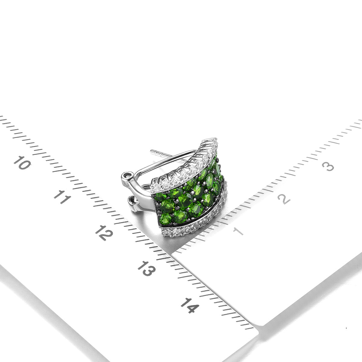 Lohaspie Jewelry Genuine 3.5 Carats Clip Earring Silver 925 Original Natural Chrome Diopside Clip Earring Round Cut Gemstone Earrings For Women Sterling Silver 925 Jewelry