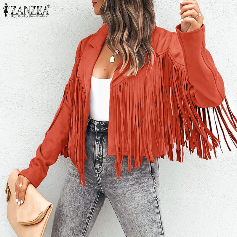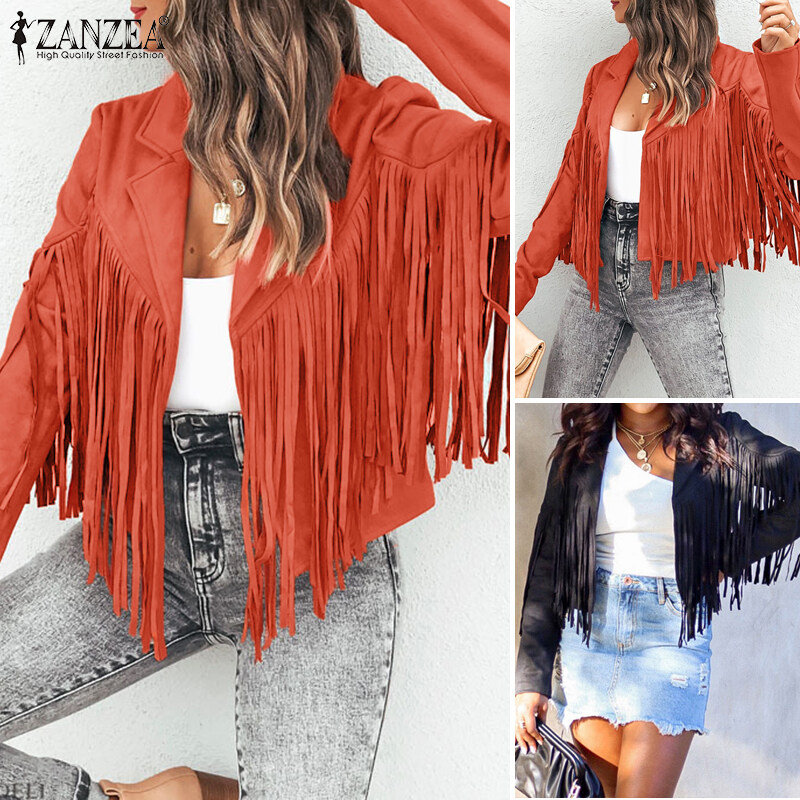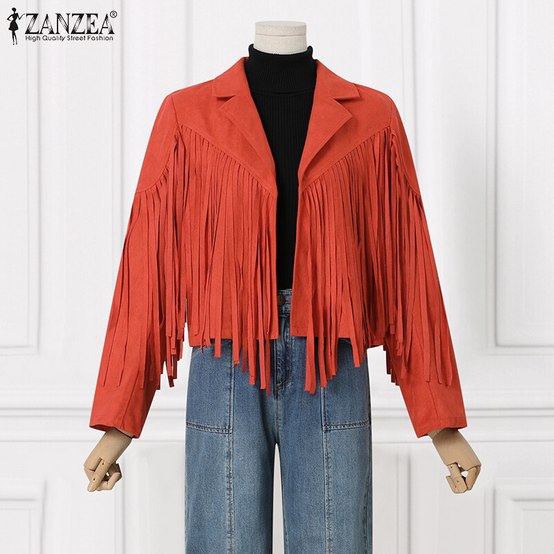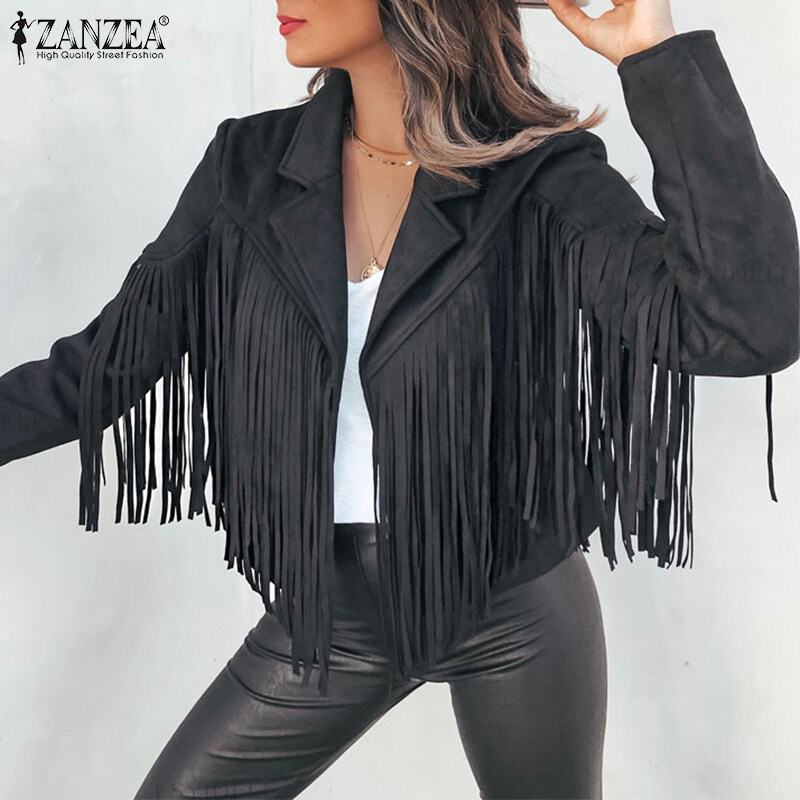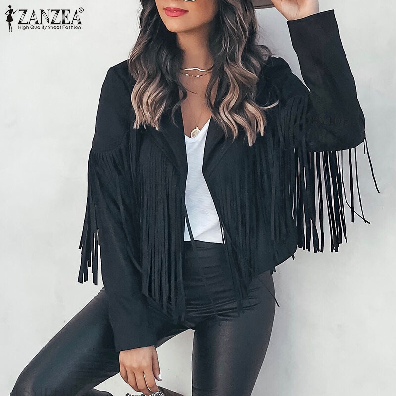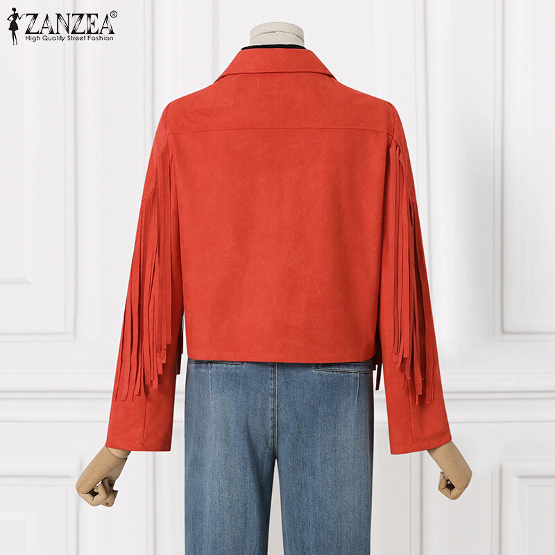ZANZEA Autumn Street Fashion Plain Jacket Women Long Sleeved Tassel Trim Coat Loose Outwear #15