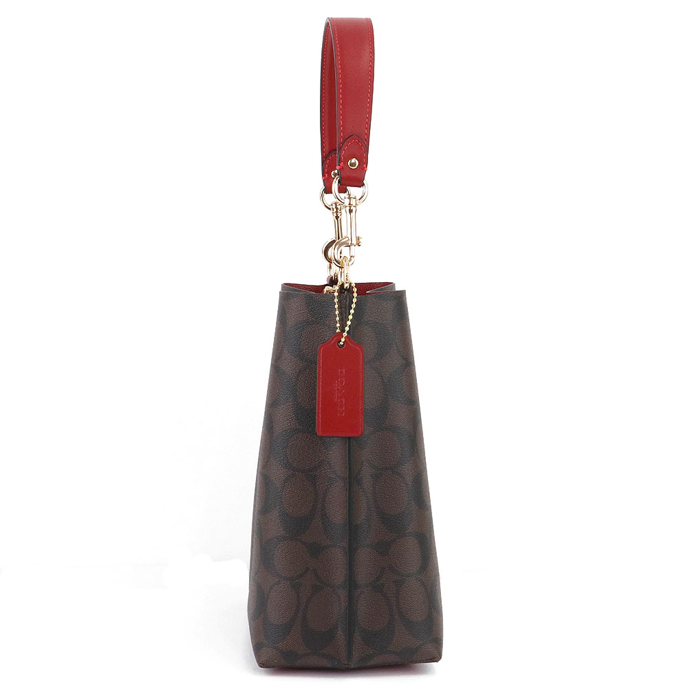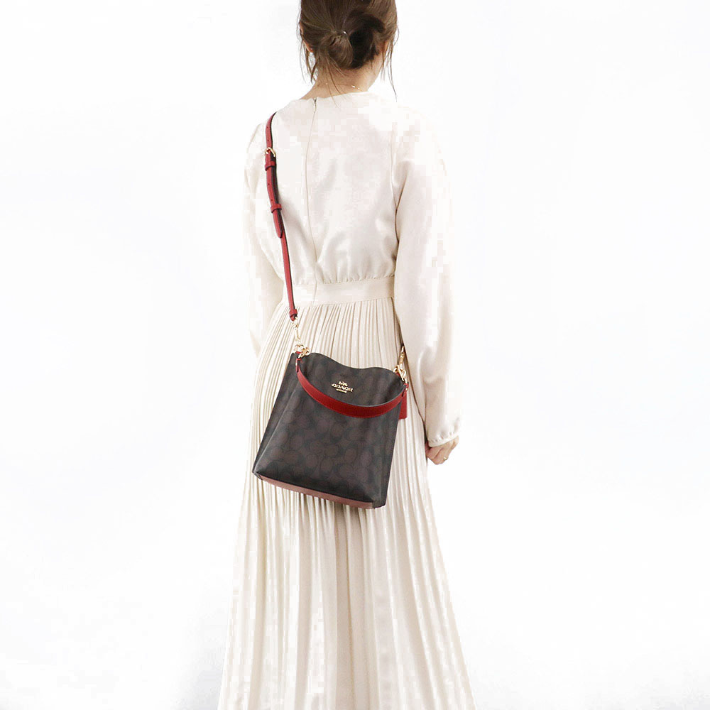 Coach Handbag In Gift Box Crossbody Bag Mollie 22 In Signature Canvas Bucket Bag Brown 1941 Red # CA582