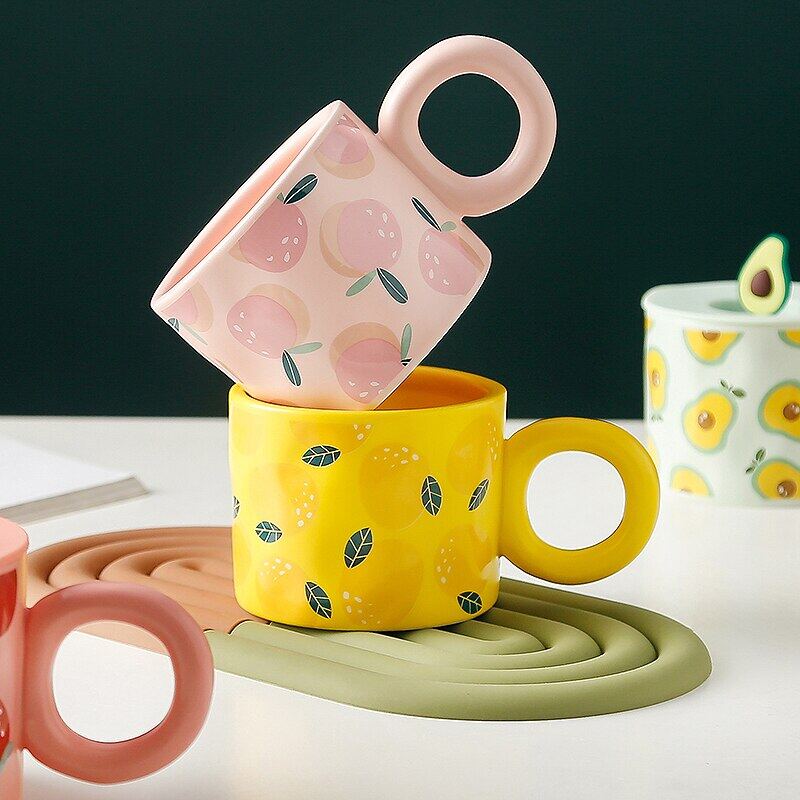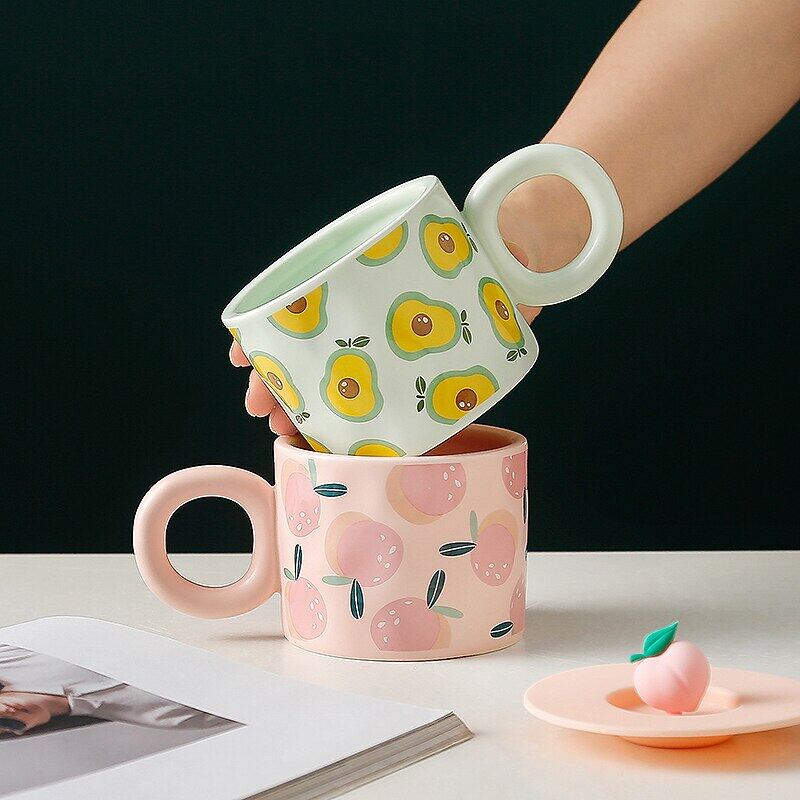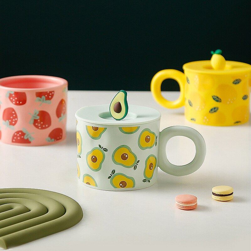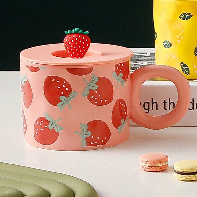 Creative Fruit Shape Mug With Lid Large Capacity Drinking Cup Home Office Ceramic Breakfast Milk Water Juice Cup Couple Gift Hot