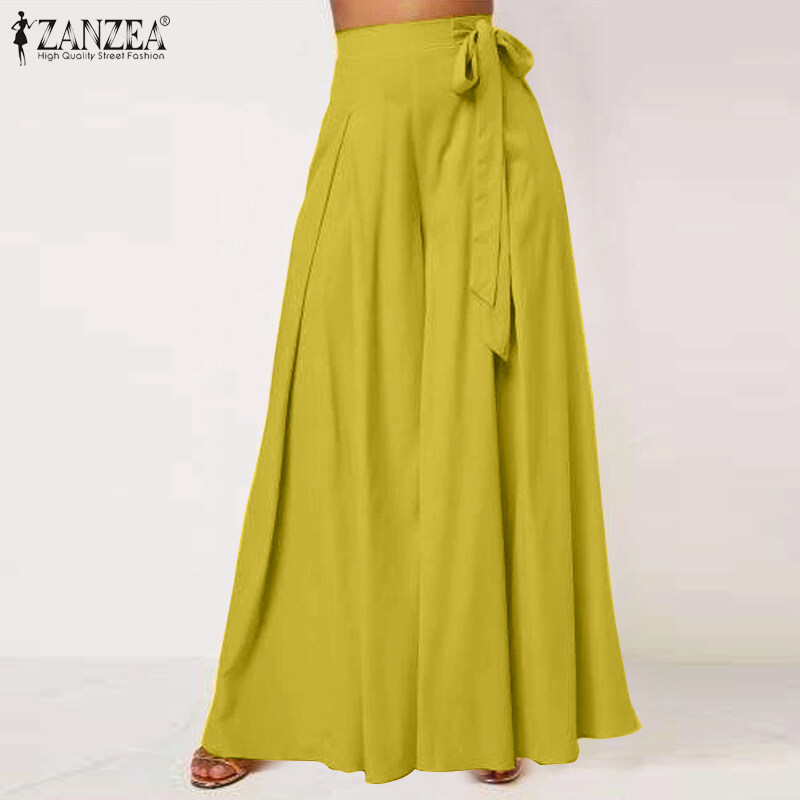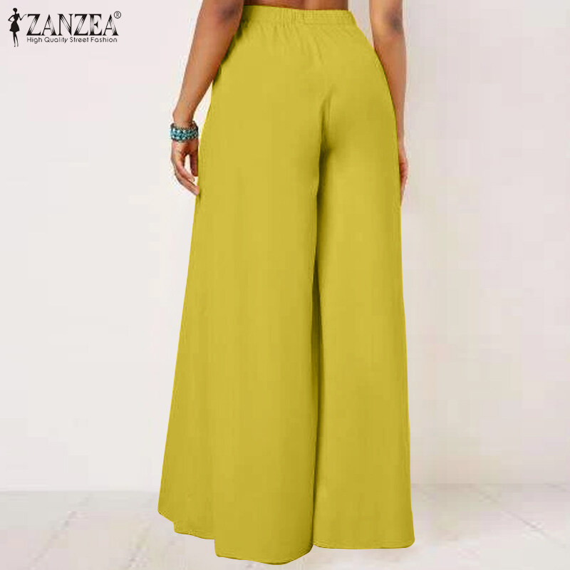 ZANZEA Women Wide Leg High Waist Trousers Formal Business Culottes Ladies Pants